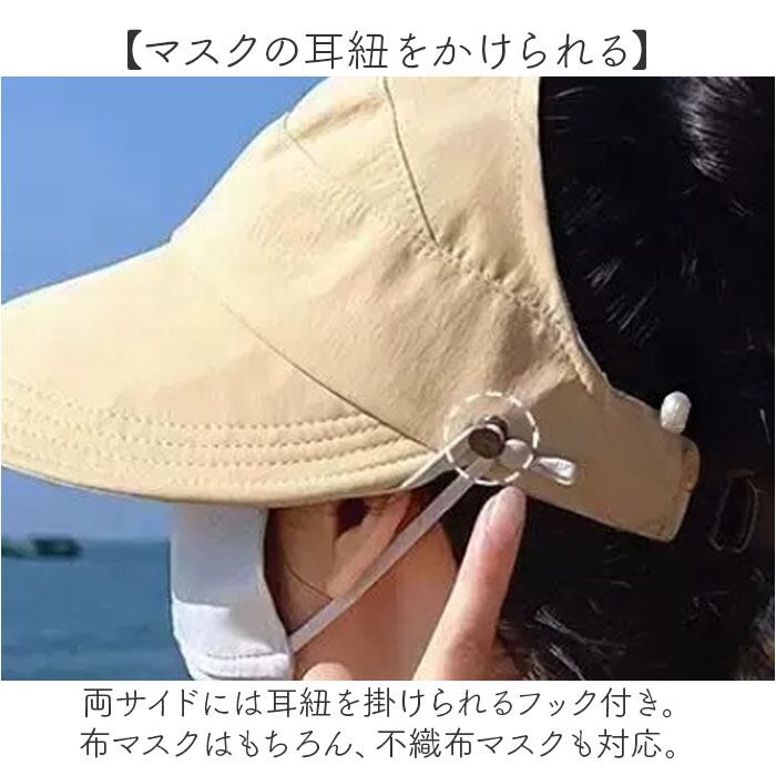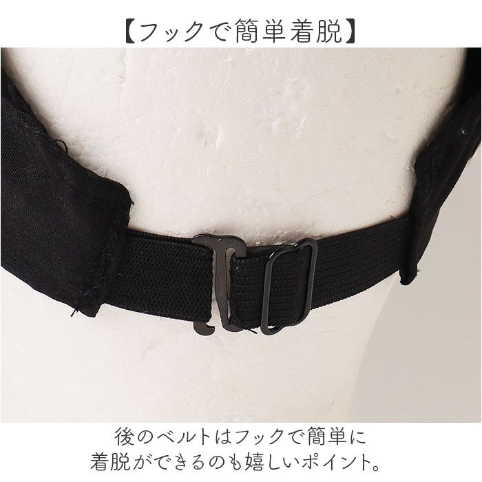・両サイドには耳紐を掛けられるフック付き。布マスクはもちろん、不織布マスクも対応。