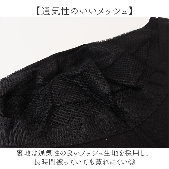 ・裏地は通気性の良いメッシュ生地を採用し、長時間被っていても蒸れにくい◎