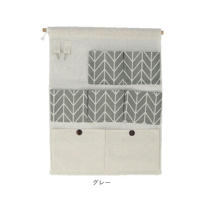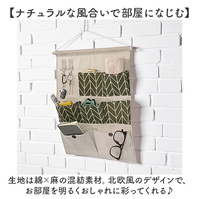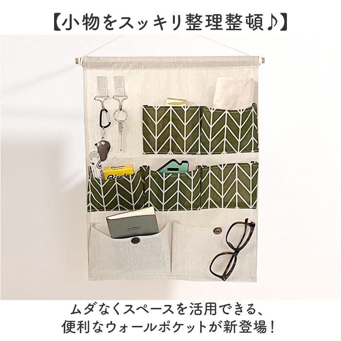 ・大小のポケットが7つとフック2つが付いたデザイン。たくさん収納できて、見た目もスッキリ!