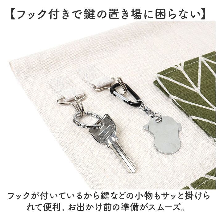 ・フックが付いているから鍵などの小物もサッと掛けられて便利。お出かけ前の準備がスムーズ。