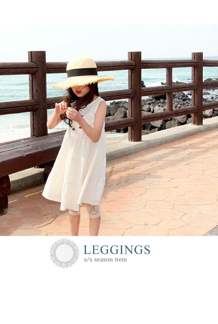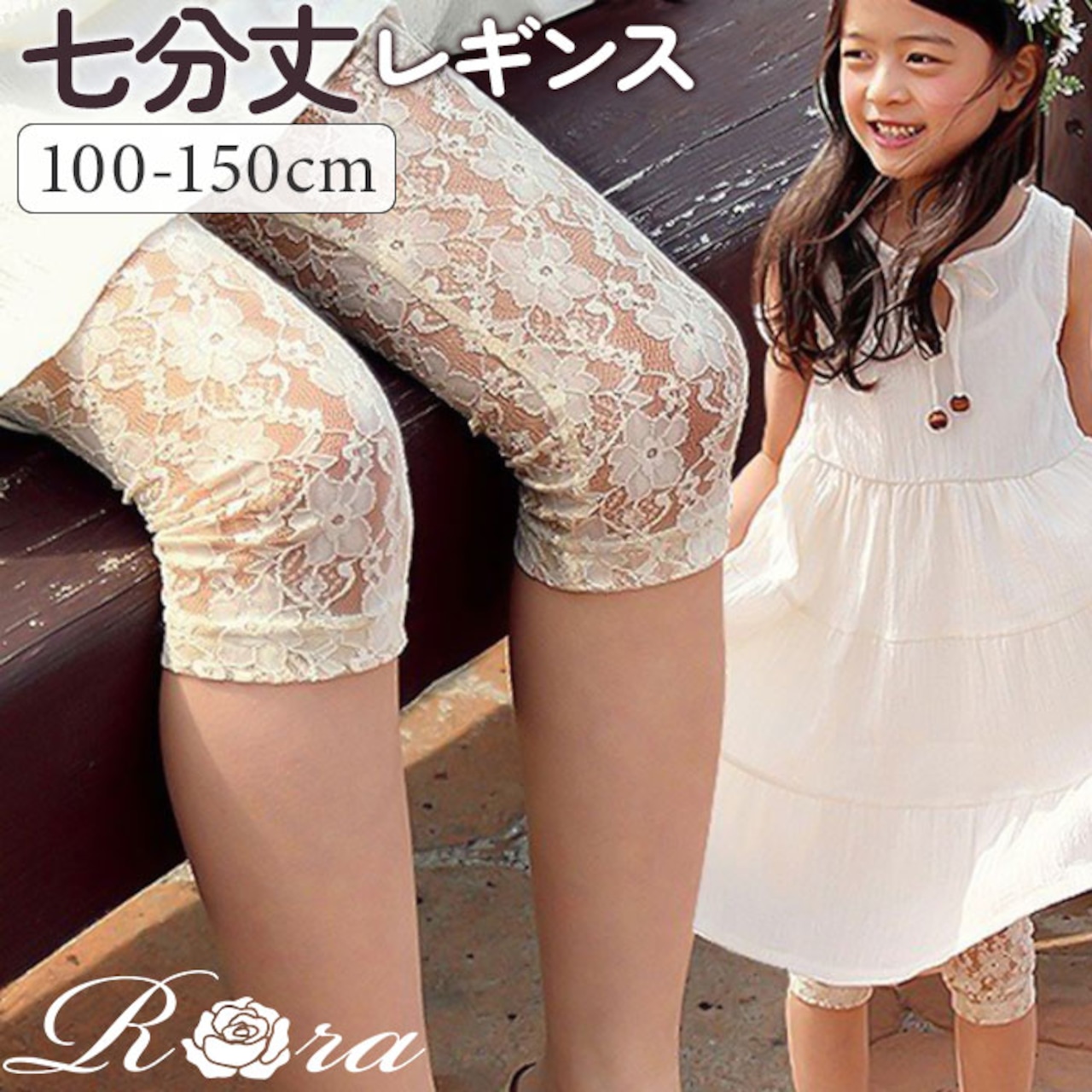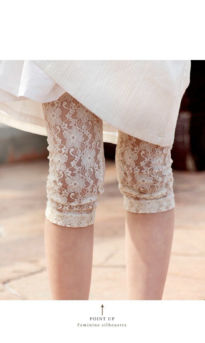 ・ナチュラルで優雅な雰囲気を演出するほんのりベージュ色の7分丈総レースレギンスでいつものワンピースやショートパンツ、スカートと重ねても女の子らしいきれいめな印象に♪