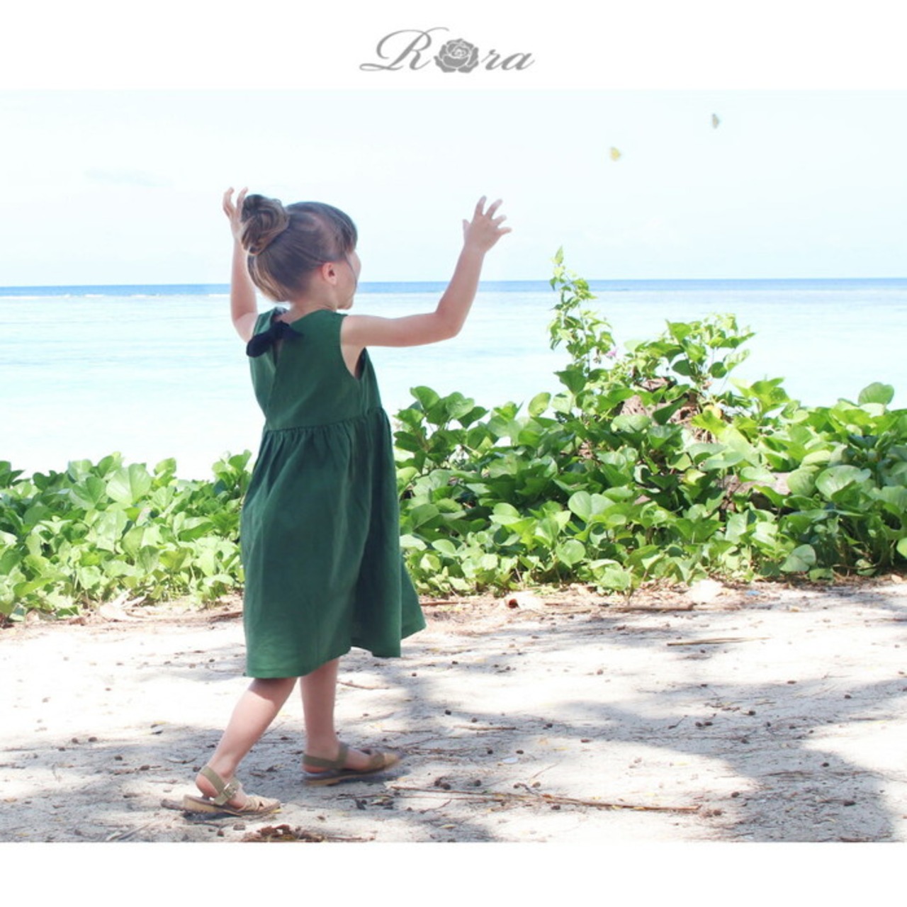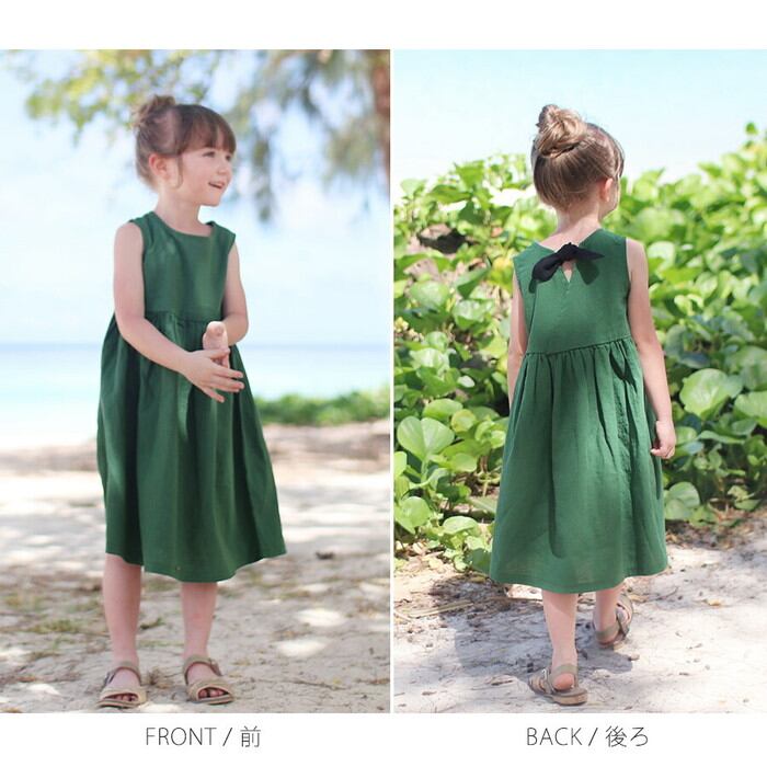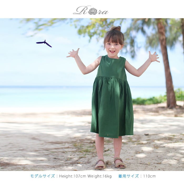 Rora ワンピース キッズ 通販 ローラ ワンピ パピヨン ノースリーブ 袖なし バックリボン 無地 コットンリネン 綿麻 夏服 春 夏 カジュアル ナチュラル かわいい おしゃれ 女の子 子ども こども 子ども服 子供服 こども服 キッズファッション