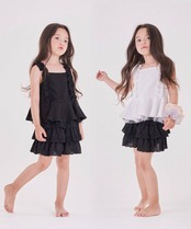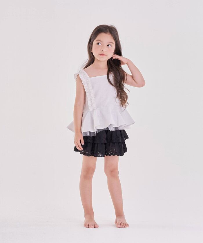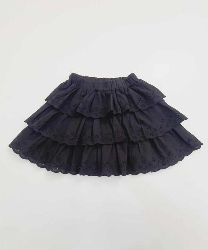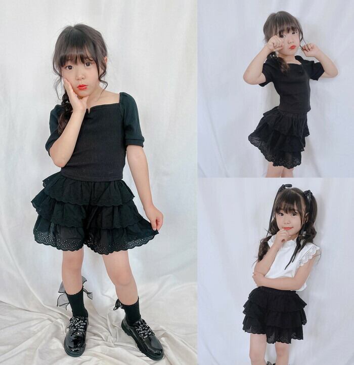 ・大人っぽい黒のコットンレースで仕立てたキュロットパンツは、単調になりがちな黒スカートパンツに心地良いリズムを加えたティアードカンカンデザインがとっても涼しげな感じ♪