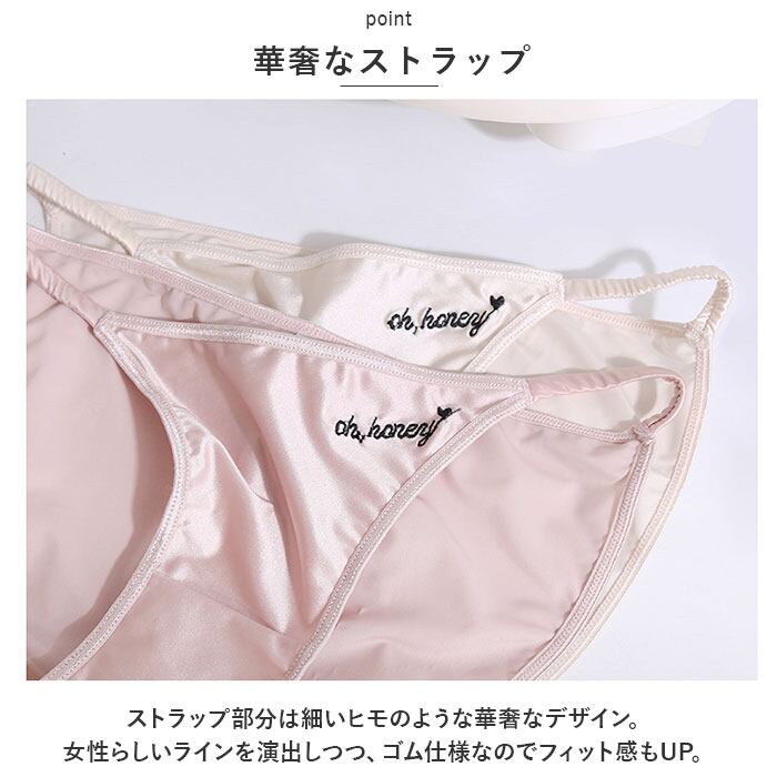 ・ストラップ部分は細いヒモのような華奢なデザイン。女性らしいラインを演出しつつ、ゴム仕様なのでフィット感もUP。