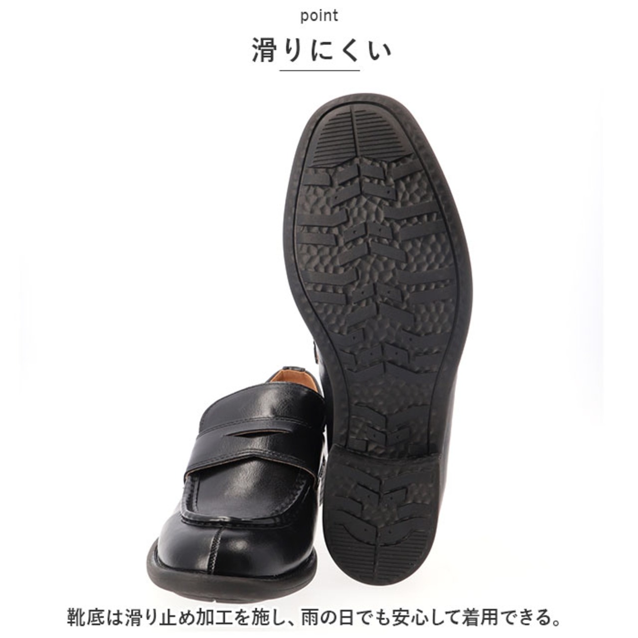 ・靴底は滑り止め加工を施し、雨の日でも安心して着用できる。