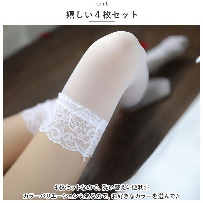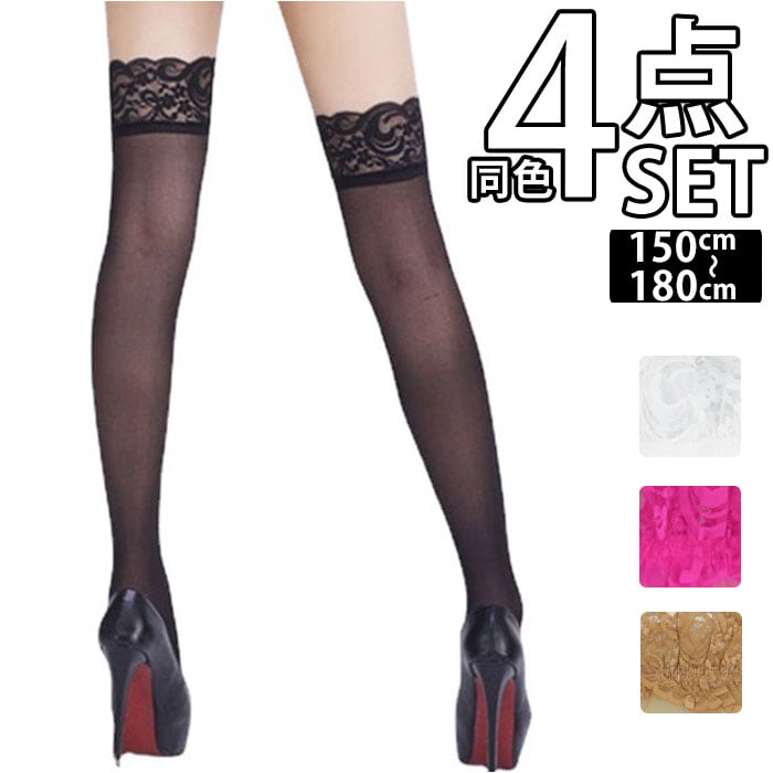 ガーターストッキング 4枚セット 4枚 通販 4点セット 4点 セット レース ストッキング 膝上 ランジェリー セクシー ガーターベルト不要 ガーター不要 ひざ上 滑り止め すべり止め ベージュ ブラック ピンク ホワイト