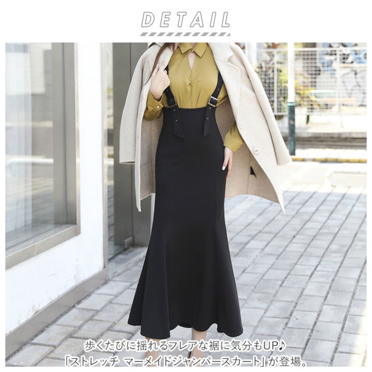 ・歩くたびに揺れるフレアな裾に気分もUP♪「ストレッチ マーメイドジャンパースカート」が登場。