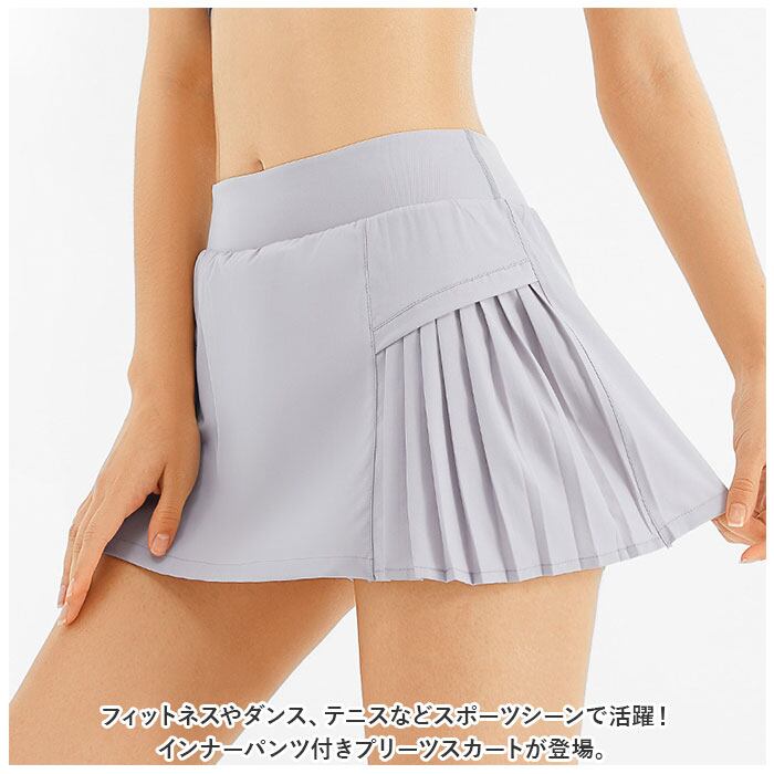 ・フィットネスやダンス、テニスなどスポーツシーンで活躍!インナーパンツ付きプリーツスカートが登場。