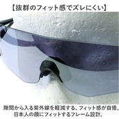 ・隙間から入る紫外線を軽減する、フィット感が自慢。日本人の顔にフィットするフレーム設計。