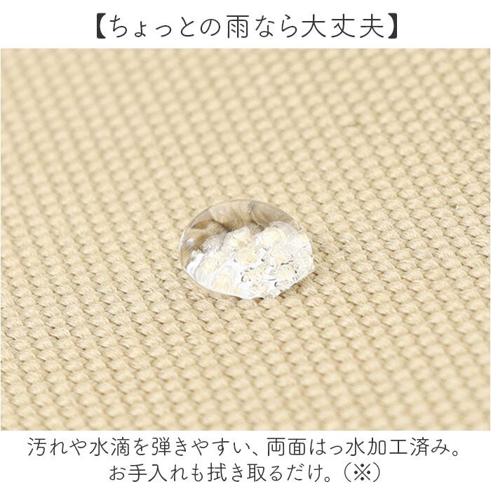 ・汚れや水滴を弾きやすい、両面はっ水加工済み。お手入れも拭き取るだけ。