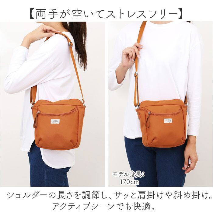 ・ショルダーの長さを調節し、サッと肩掛けや斜め掛け。アクティブシーンでも快適。