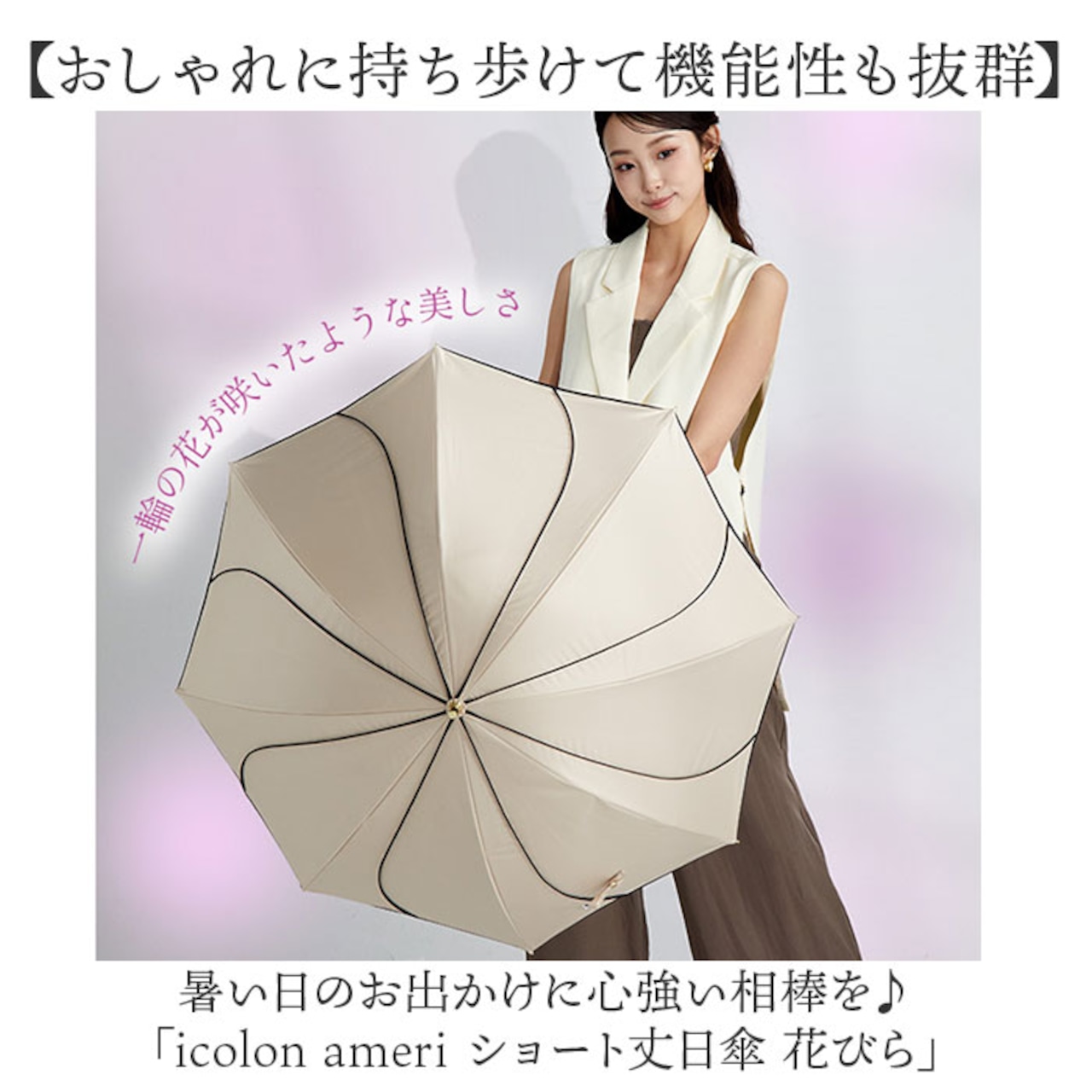 ・暑い日のお出かけに心強い相棒を♪「icolon ameri ショート丈日傘 花びら」。