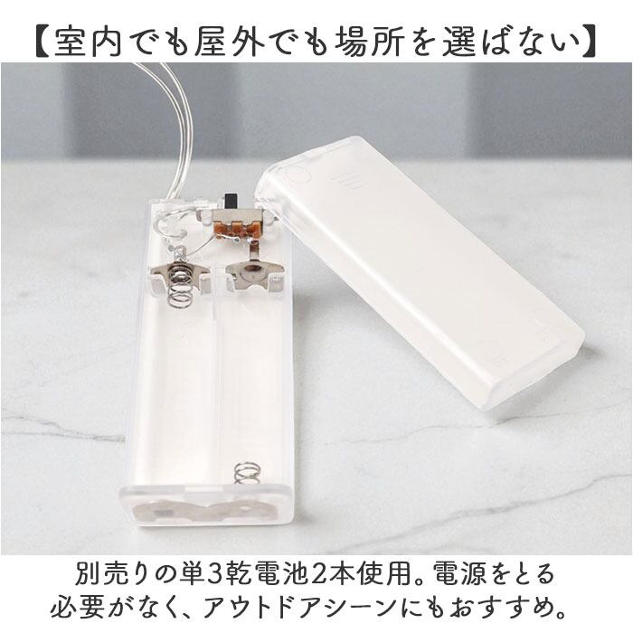 ・別売りの単3乾電池2本使用。電源をとる必要がなく、アウトドアシーンにもおすすめ。