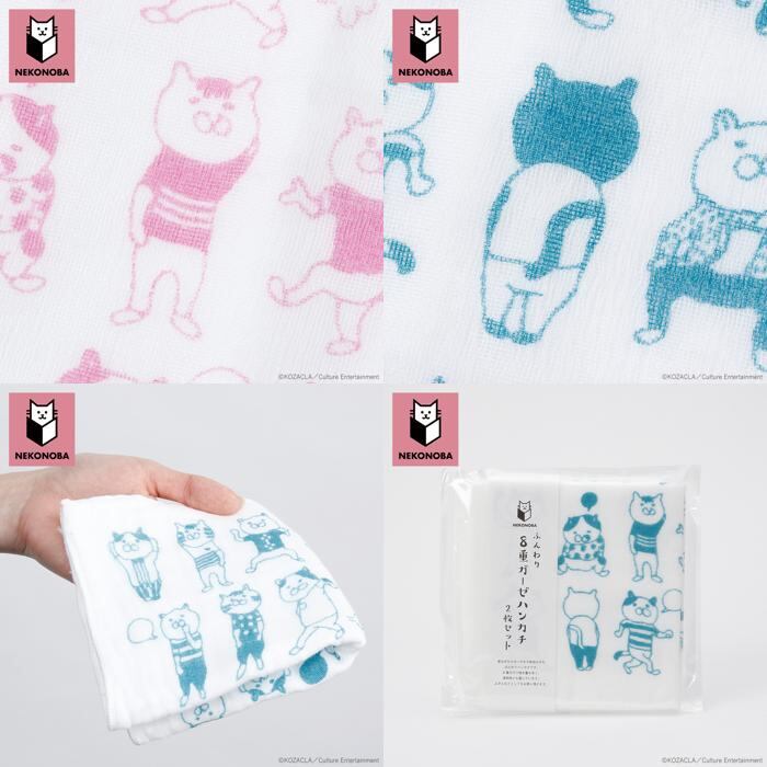NEKONOBA グッズ 通販 ネコノバ ガーゼハンカチ 2枚セット ハンカチ タオルハンカチ セット ハンドタオル ハンカチタオル ガーゼタオル ミニタオル ふきん 布巾 お口拭き 手拭き キャラクター 可愛い 猫 ねこ ネコ 猫グッズ かわいい おしゃれ