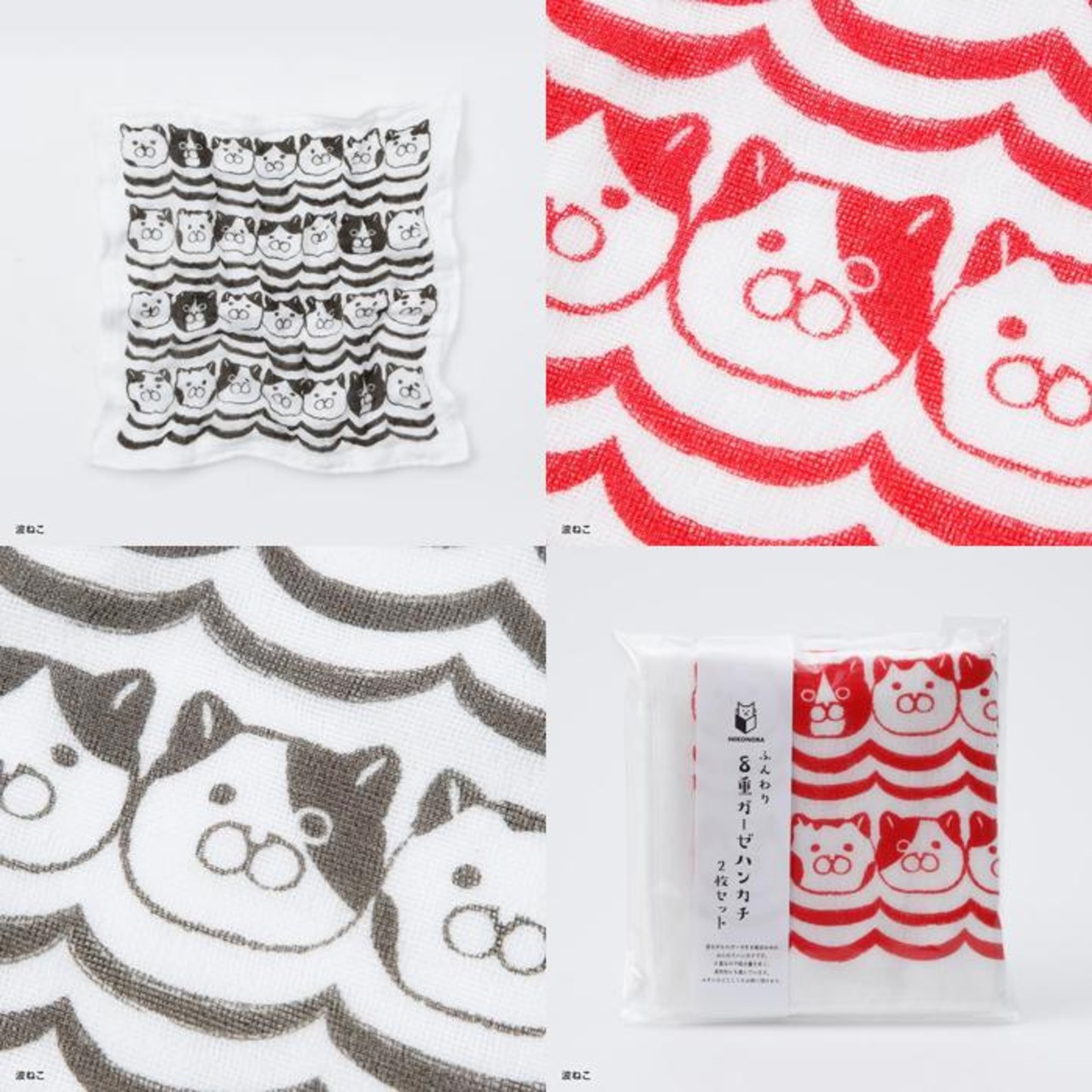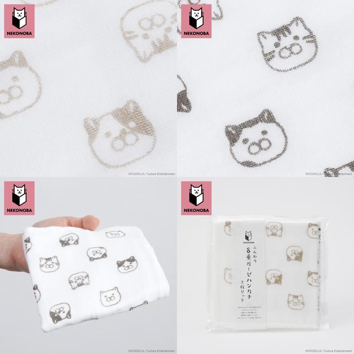 NEKONOBA ふんわり8重ガーゼハンカチ2枚セット