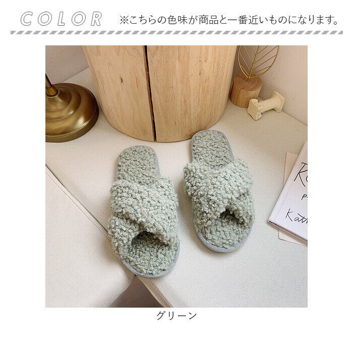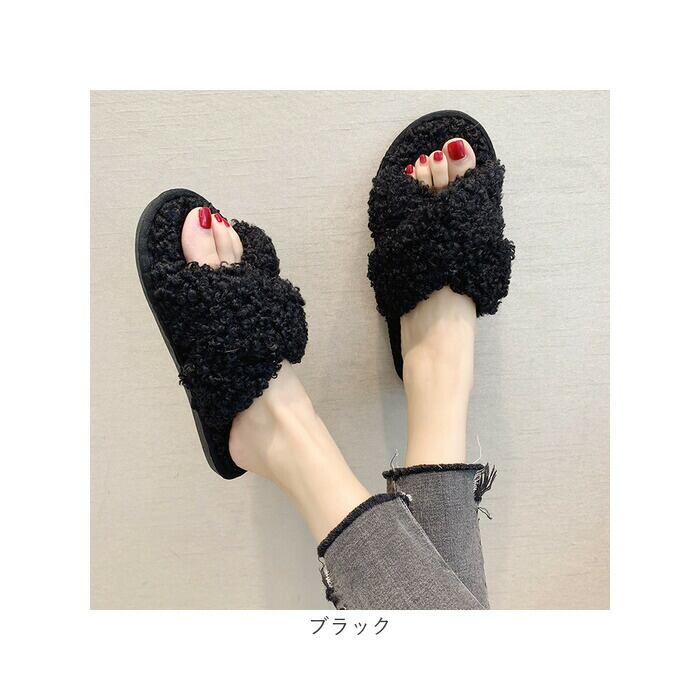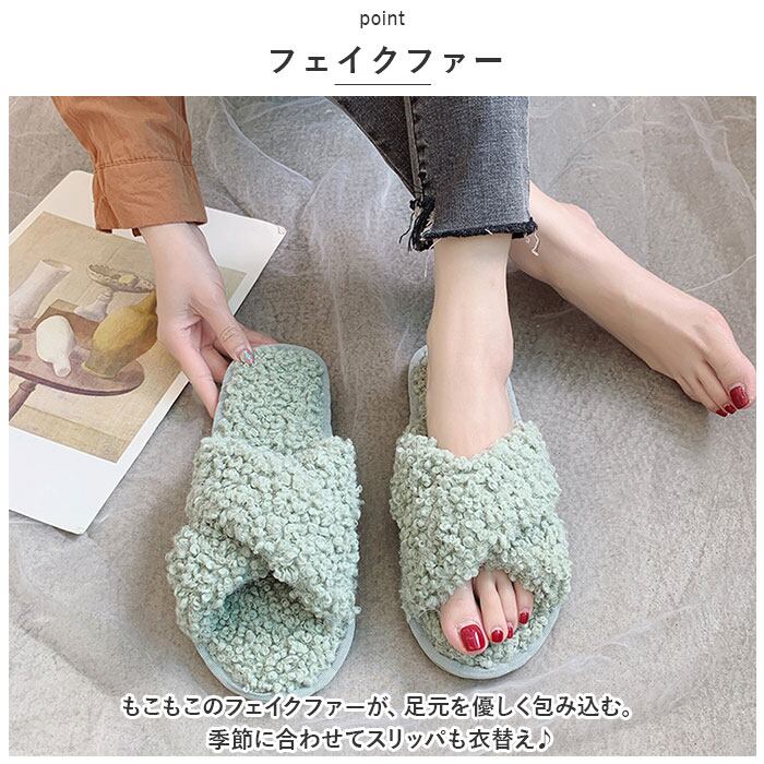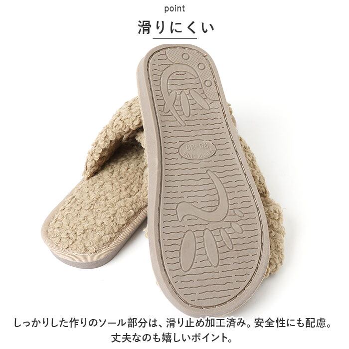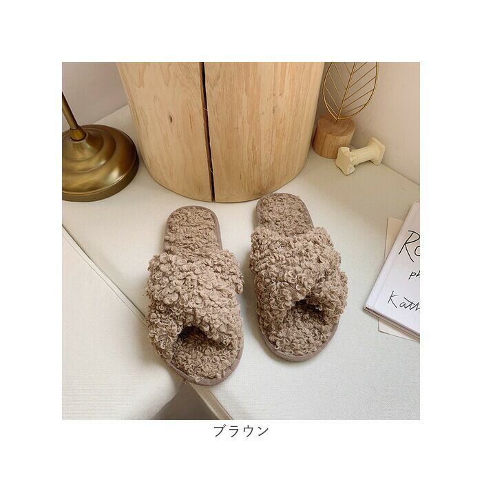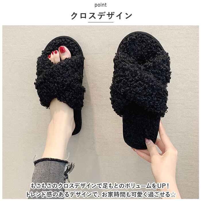 ・もこもこのクロスデザインで足もとのボリュームをUP!トレンド感のあるデザインで、お家時間も可愛く過ごせる☆