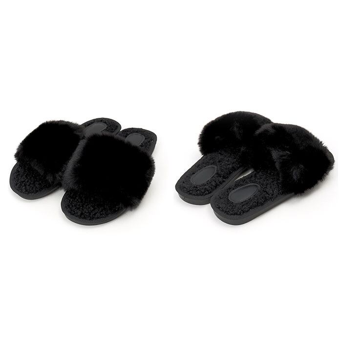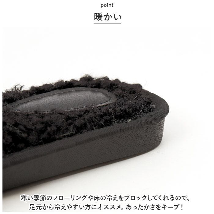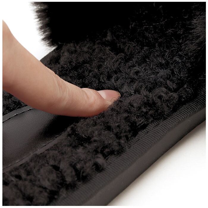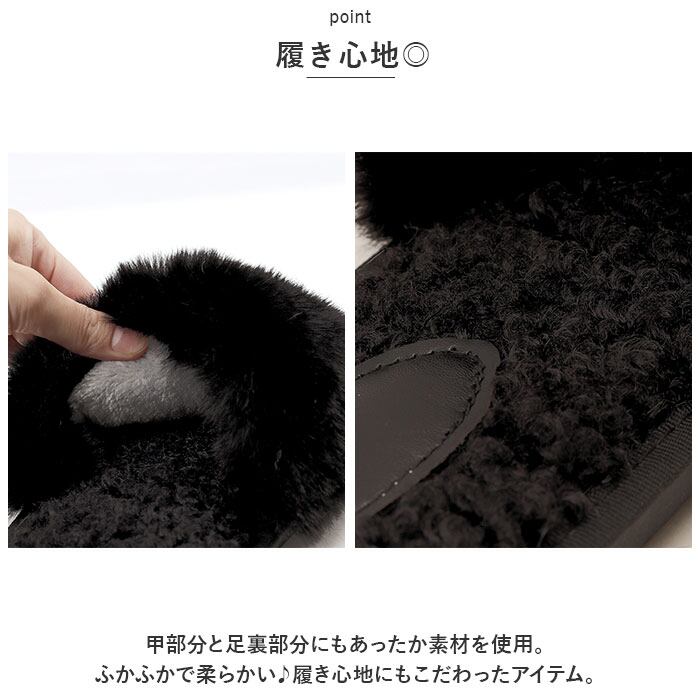 ・もこもこボリュームのあるフェイクファーが、足元を優しく包み込む。思わず触りたくなっちゃう手触りが魅力。