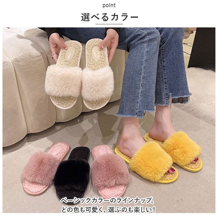 もこもこ スリッパ 通販 ルームシューズ ルームスリッパ 秋 冬用 前開きスリッパ ルームサンダル 室内履き オープントゥ ボア フェイクファー 暖かい あったかい かわいい ふわふわ ふんわり レディース 日用品 雑貨 可愛い インテリア