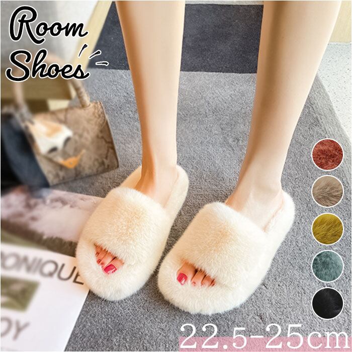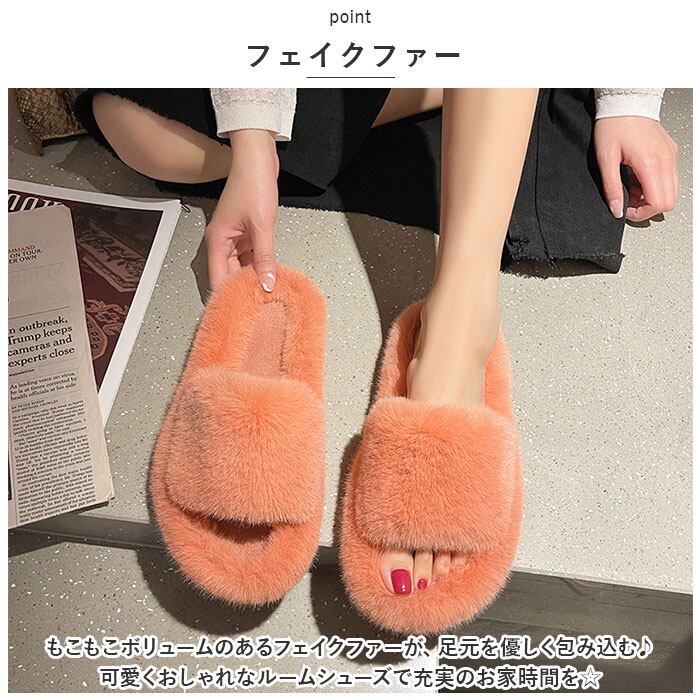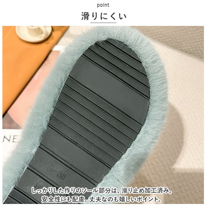 ・もこもこボリュームのあるフェイクファーが、足元を優しく包み込む♪可愛くおしゃれなルームシューズで充実のお家時間を☆