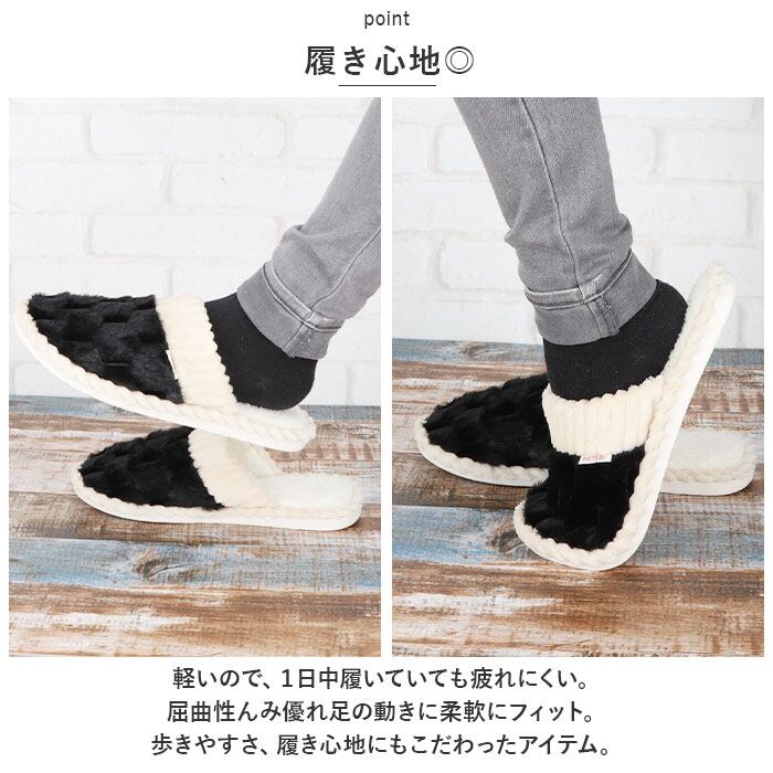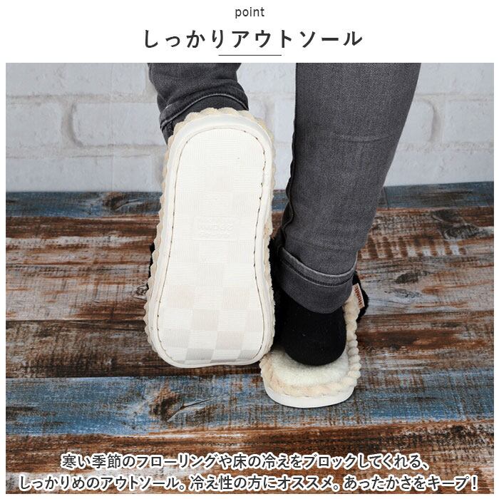 ・寒い季節のフローリングや床の冷えをブロックしてくれる、しっかりめのアウトソール。冷え性の方にオススメ。あったかさをキープ!
