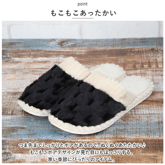 ・つま先までしっかりとボアがあるので、ぬくぬくあたたかい♪もこもこボアデザインが見た目にもほっこりする、寒い季節にぴったりのアイテム。