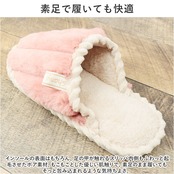 ・インソールの表面はもちろん、足の甲が触れるスリッパ内側もふわっと起毛させたボア素材。もこもことした優しい肌触りで、素足のまま履いてもそっと包み込まれるような気持ちよさ。