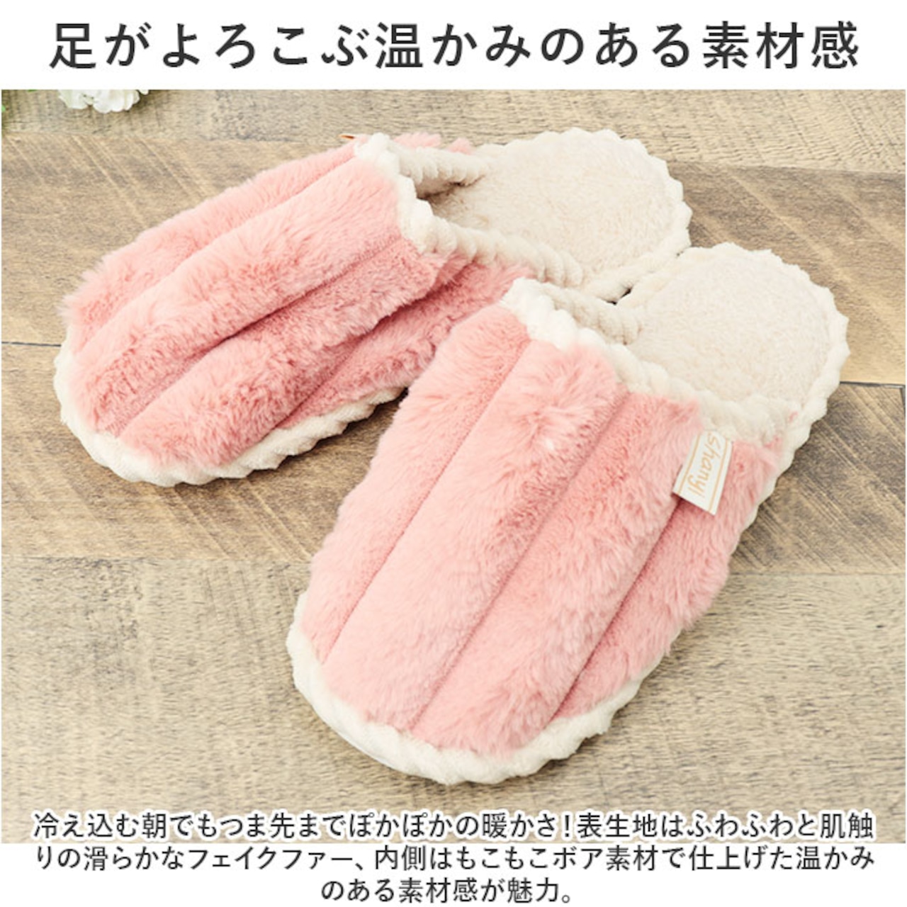 ・冷え込む朝でもつま先までぽかぽかの暖かさ!表生地はふわふわと肌触りの滑らかなフェイクファー、内側はもこもこボア素材で仕上げた温かみのある素材感が魅力。