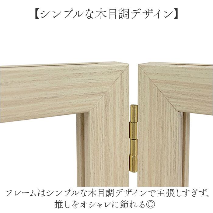 ・フレームはシンプルな木目調デザインで主張しすぎず、推しをオシャレに飾れる◎