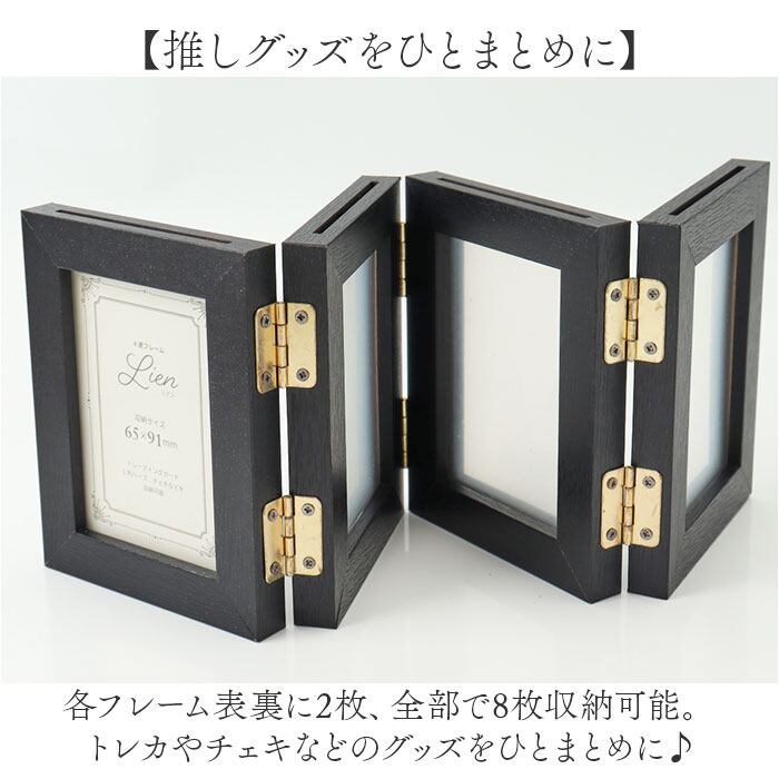 ・各フレーム表裏に2枚、全部で8枚収納可能。トレカやチェキなどのグッズをひとまとめに♪