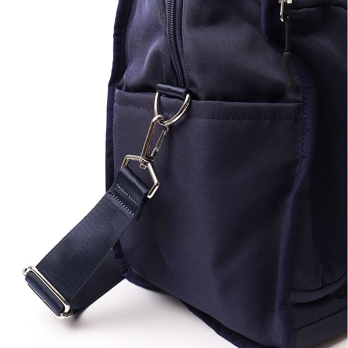 ・サイド:ダブルファスナー式シューズポケット×1、オープンポケット×1
