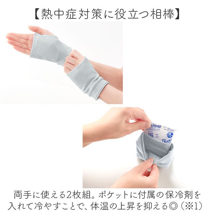・両手に使える2枚組。ポケットに付属の保冷剤を入れて冷やすことで、体温の上昇を抑える◎