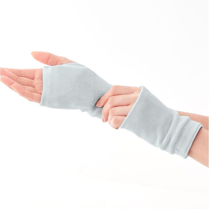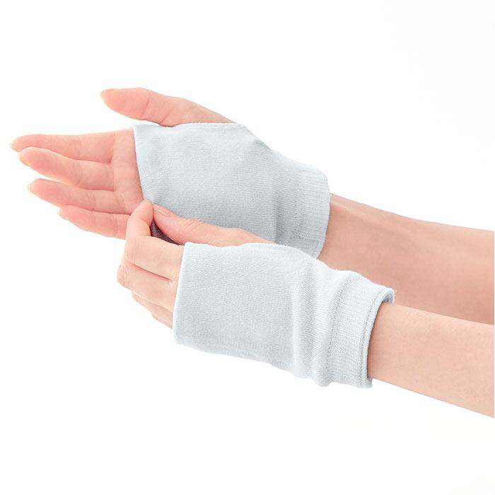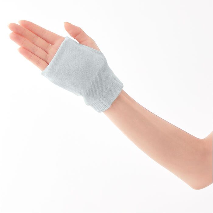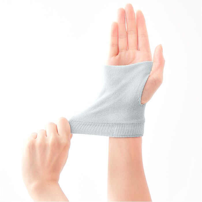 ・手のひらはもちろん、手首につけてもOK。親指スリット付きのフィンガーレスデザイン。