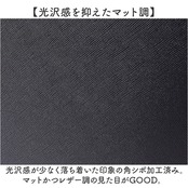 ・光沢感が少なく落ち着いた印象の角シボ加工済み。マットかつレザー調の見た目がGOOD。