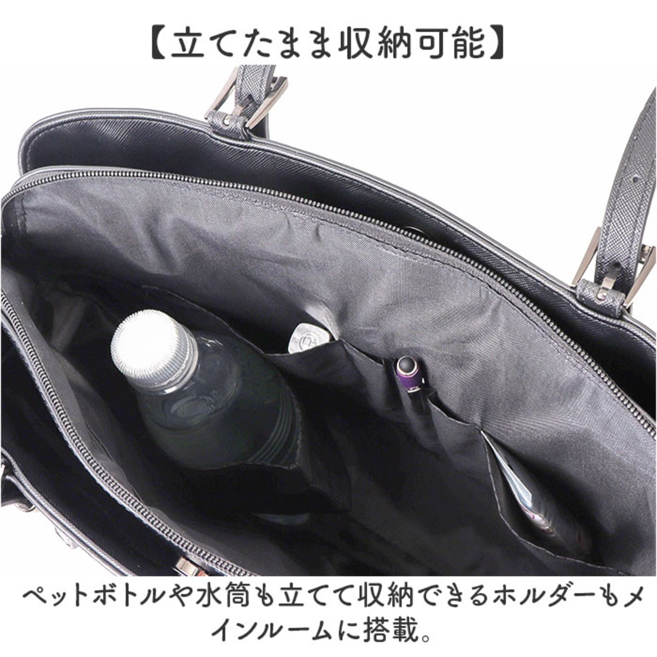 ・ペットボトルや水筒も立てて収納できるホルダーもメインルームに搭載。