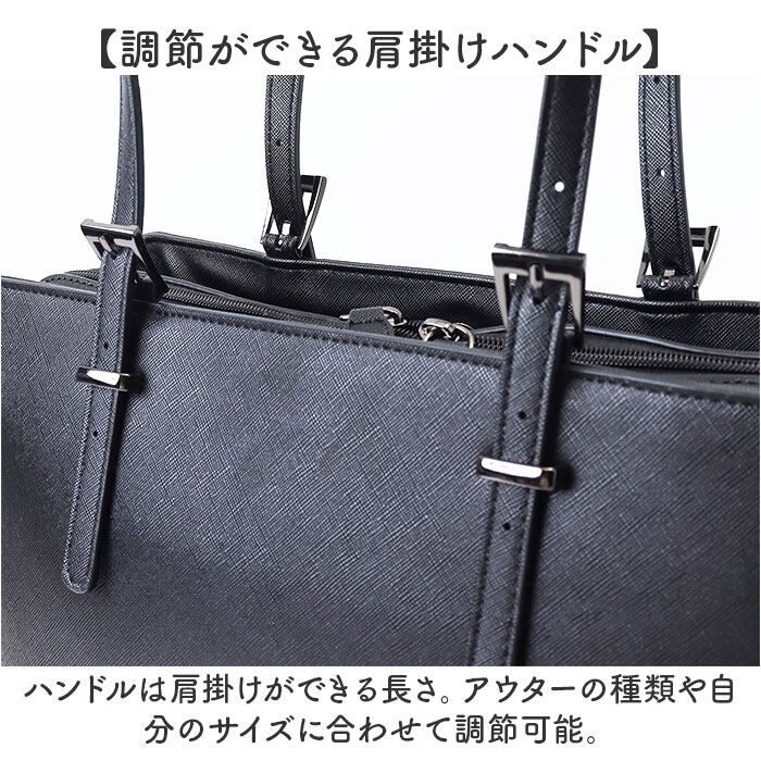 ・ハンドルは肩掛けができる長さ。アウターの種類や自分のサイズに合わせて調節可能。