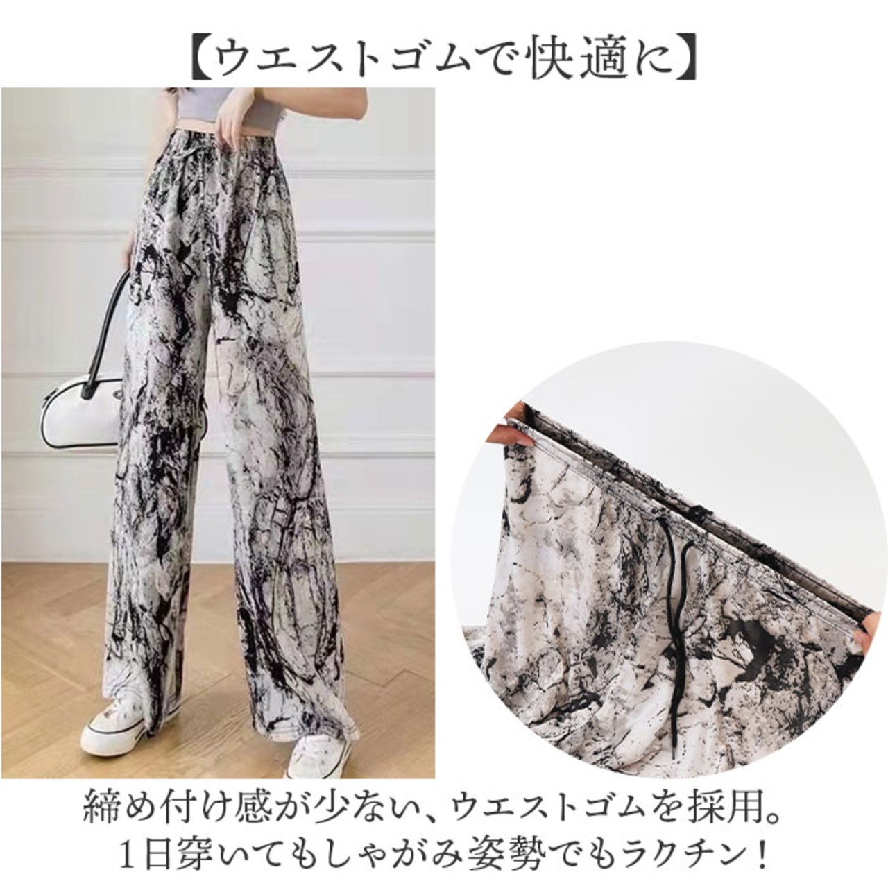 【ウエストゴムで快適に】