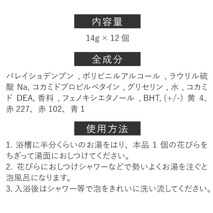・半分ほどお湯をはった浴槽に花びらをちぎって散らし、勢いよくお湯を注ぐと泡風呂に☆