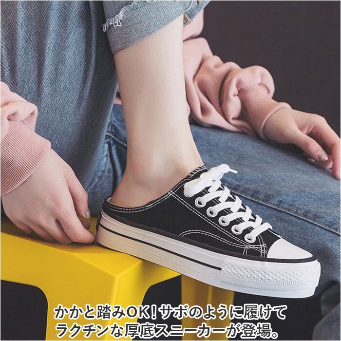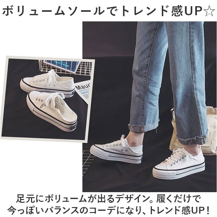 ・かかと踏みOK!サボのように履けてラクチンな厚底スニーカーが登場。