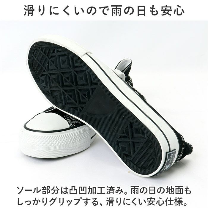 ・ソール部分は凸凹加工済み。雨の日の地面もしっかりグリップする、滑りにくい安心仕様。