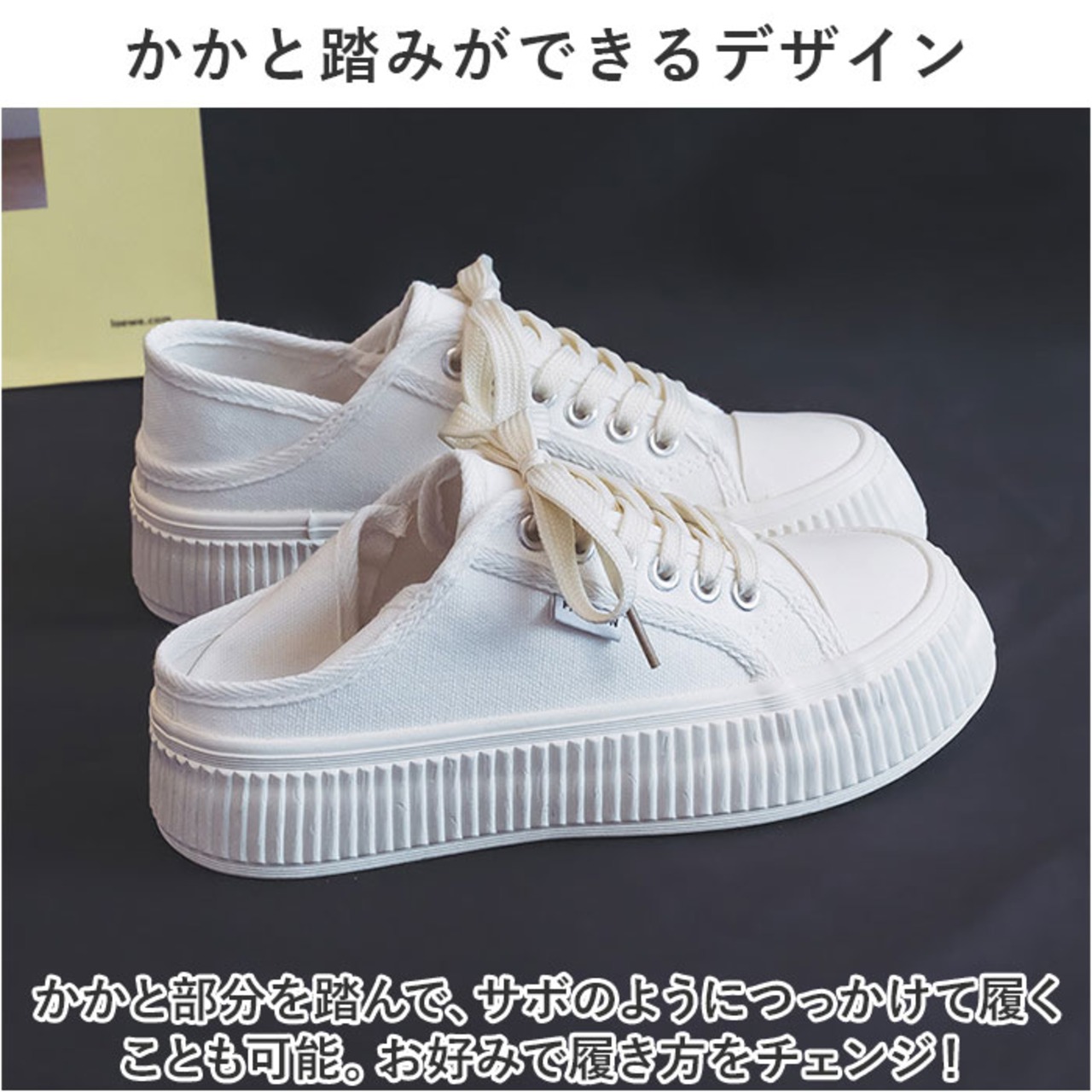 ・かかと部分を踏んで、サボのようにつっかけて履くことも可能。お好みで履き方をチェンジ!