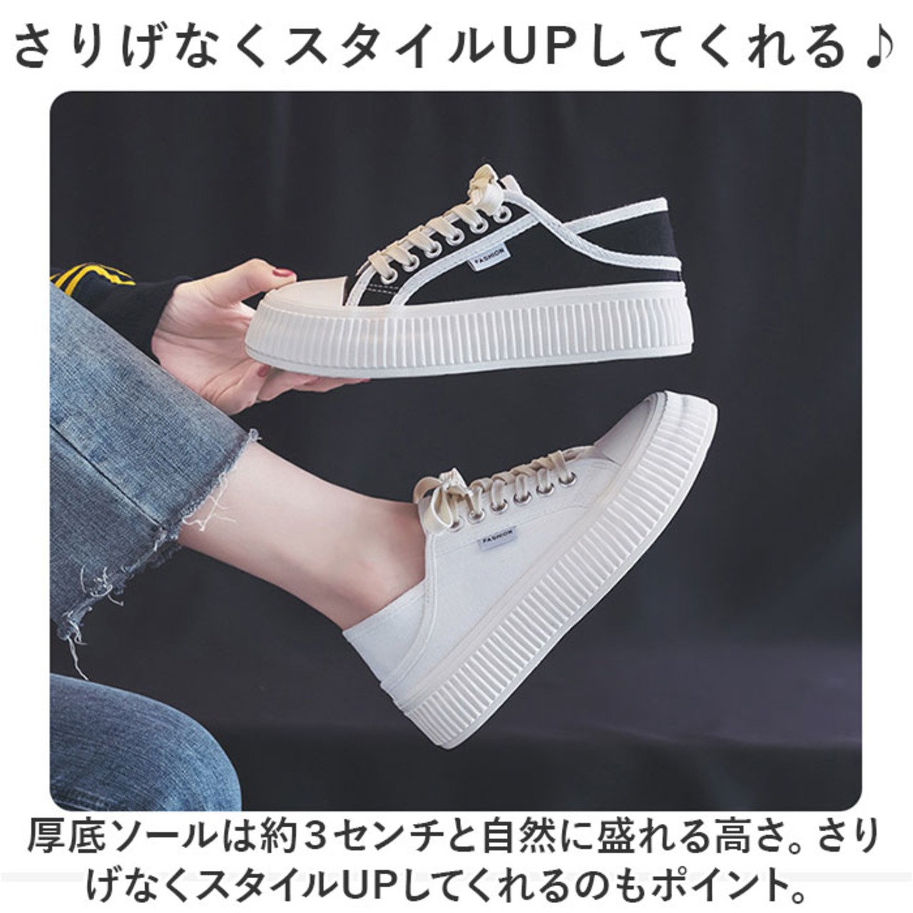 ・厚底ソールは約3センチと自然に盛れる高さ。さりげなくスタイルUPしてくれるのもポイント。