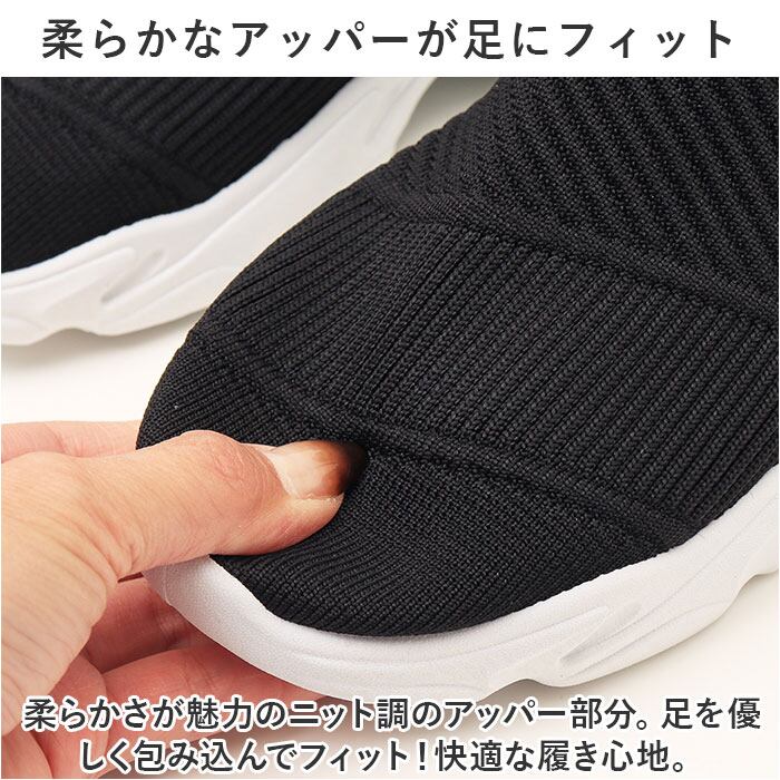 ・柔らかさが魅力のニット調のアッパー部分。足を優しく包み込んでフィット!快適な履き心地。