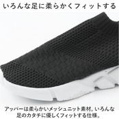 ・アッパーは柔らかいメッシュニット素材。いろんな足のカタチに優しくフィットする仕様。