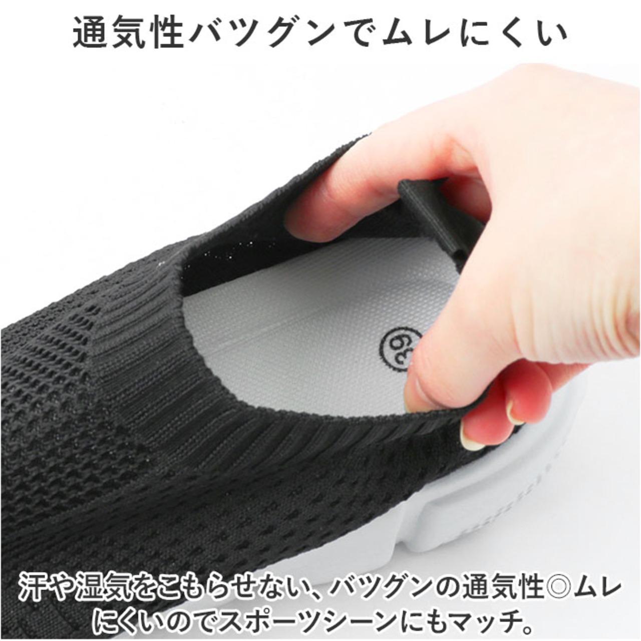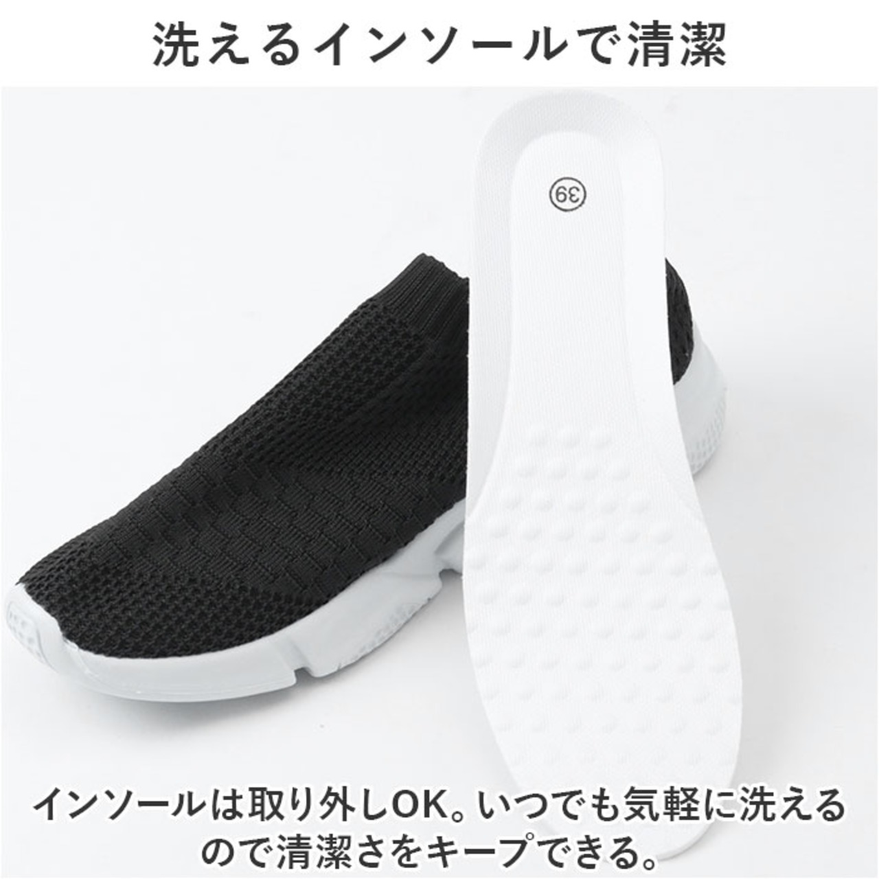 【洗えるインソールで清潔】