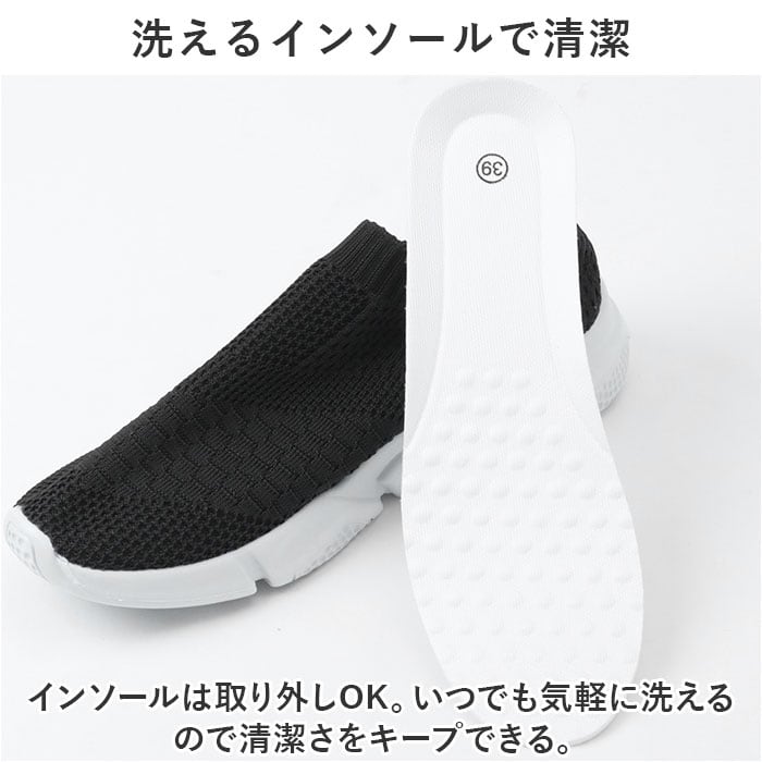 ・インソールは取り外しOK。いつでも気軽に洗えるので清潔さをキープできる。