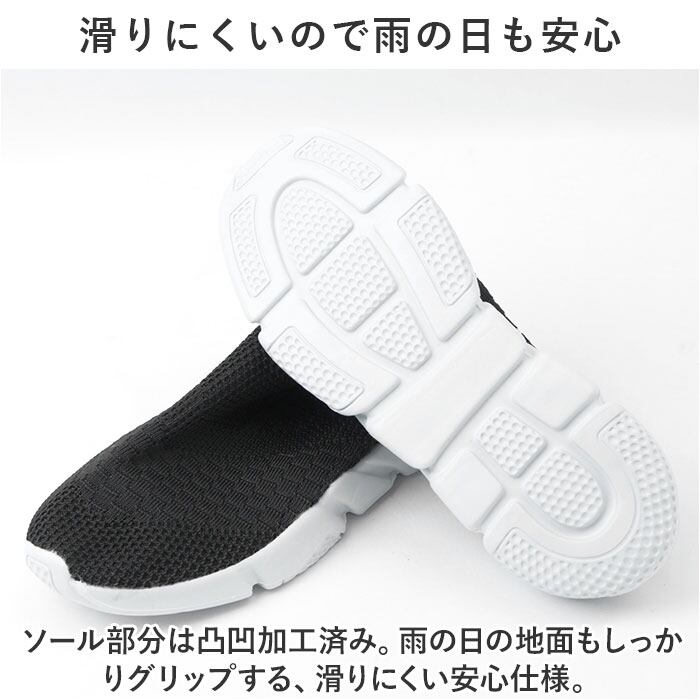 ・ソール部分は凸凹加工済み。雨の日の地面もしっかりグリップする、滑りにくい安心仕様。