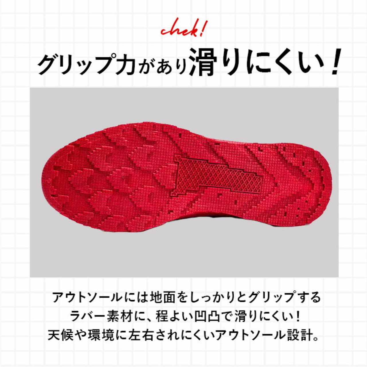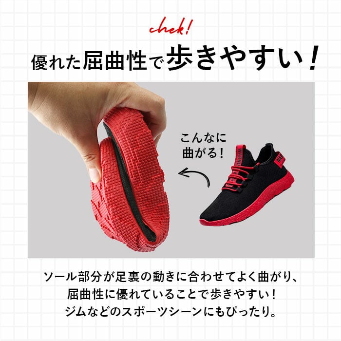 ・動きに合わせて良く曲がる、屈曲性に優れたソール部分。タウンユースはもちろん、ランニングやジムなどのスポーツシーンにもぴったり。