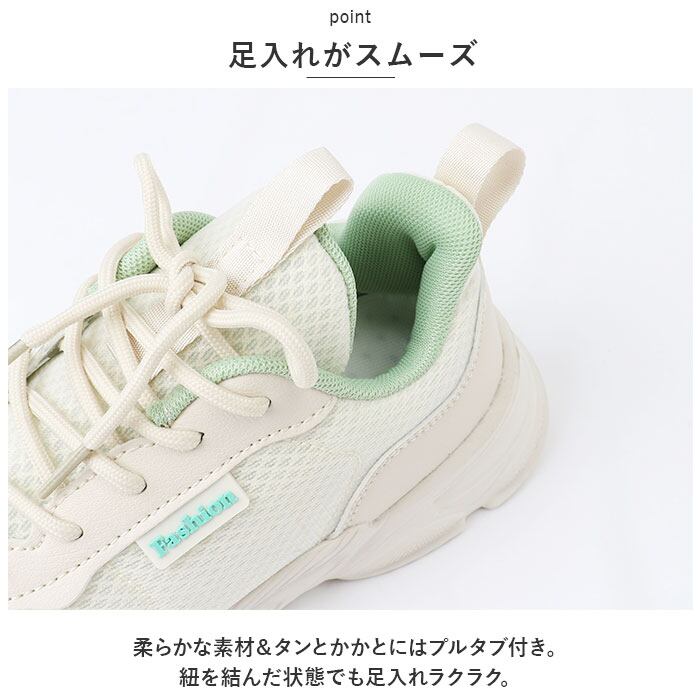 ・柔らかな素材&タンとかかとにはプルタブ付き。紐を結んだ状態でも足入れラクラク。