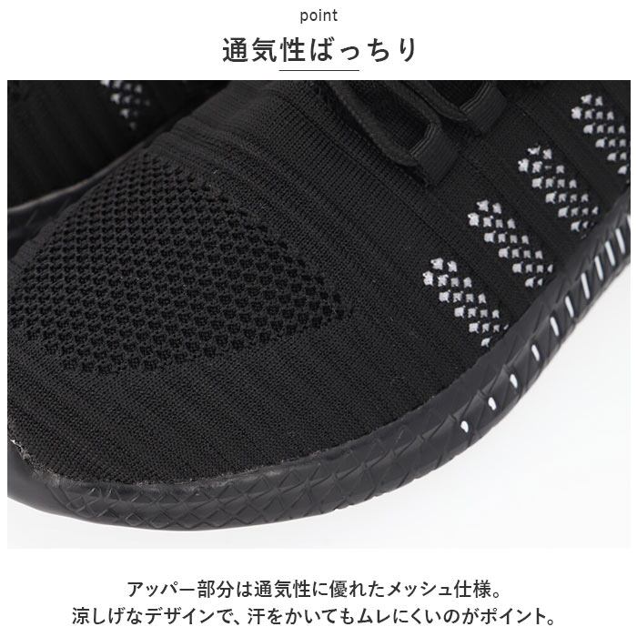 ・アッパー部分は通気性に優れたメッシュ仕様。涼しげなデザインで、汗をかいてもムレにくいのがポイント。