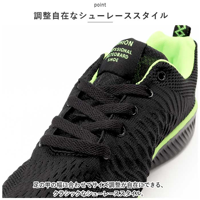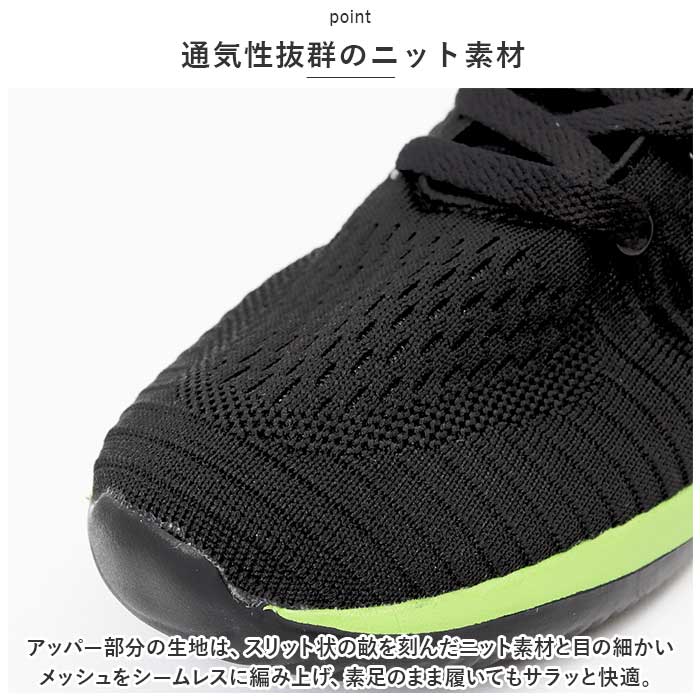 ・アッパー部分の生地は、スリット状の畝を刻んだニット素材と目の細かいメッシュをシームレスに編み上げ、素足のまま履いてもサラッと快適。